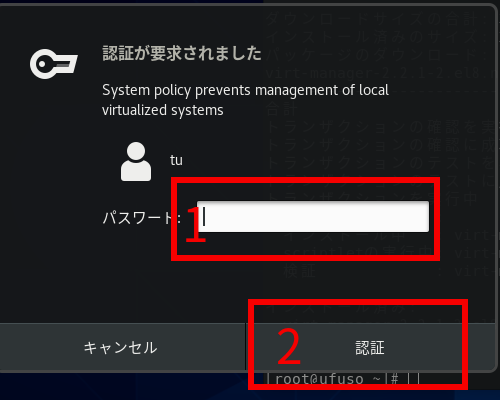 [root@ufuso ~]# dnf -y install qemu-kvm libvirt virt-install