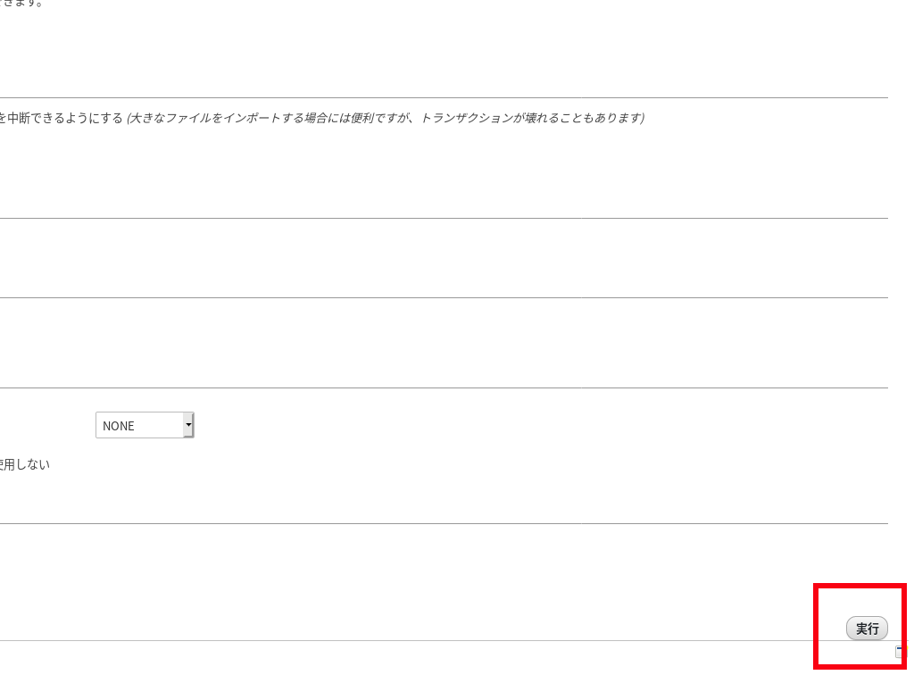 #画面下までスクロールして、右下にある赤枠の「実行」をクリックし、異常終了しなければ完了